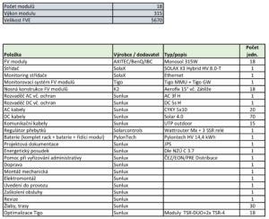 - FV Moduly AXITEC/IBC/Jinko /BENQ 315 W, 18 ks; výkonová záruka 25 let, produktová záruka 15 let- Střídač SOLAX X3 Hybrid HV 8.0-T 3fáz. o výkonu 8 kW; 2 MPPT vstupy; hybridní, zár. 5 let