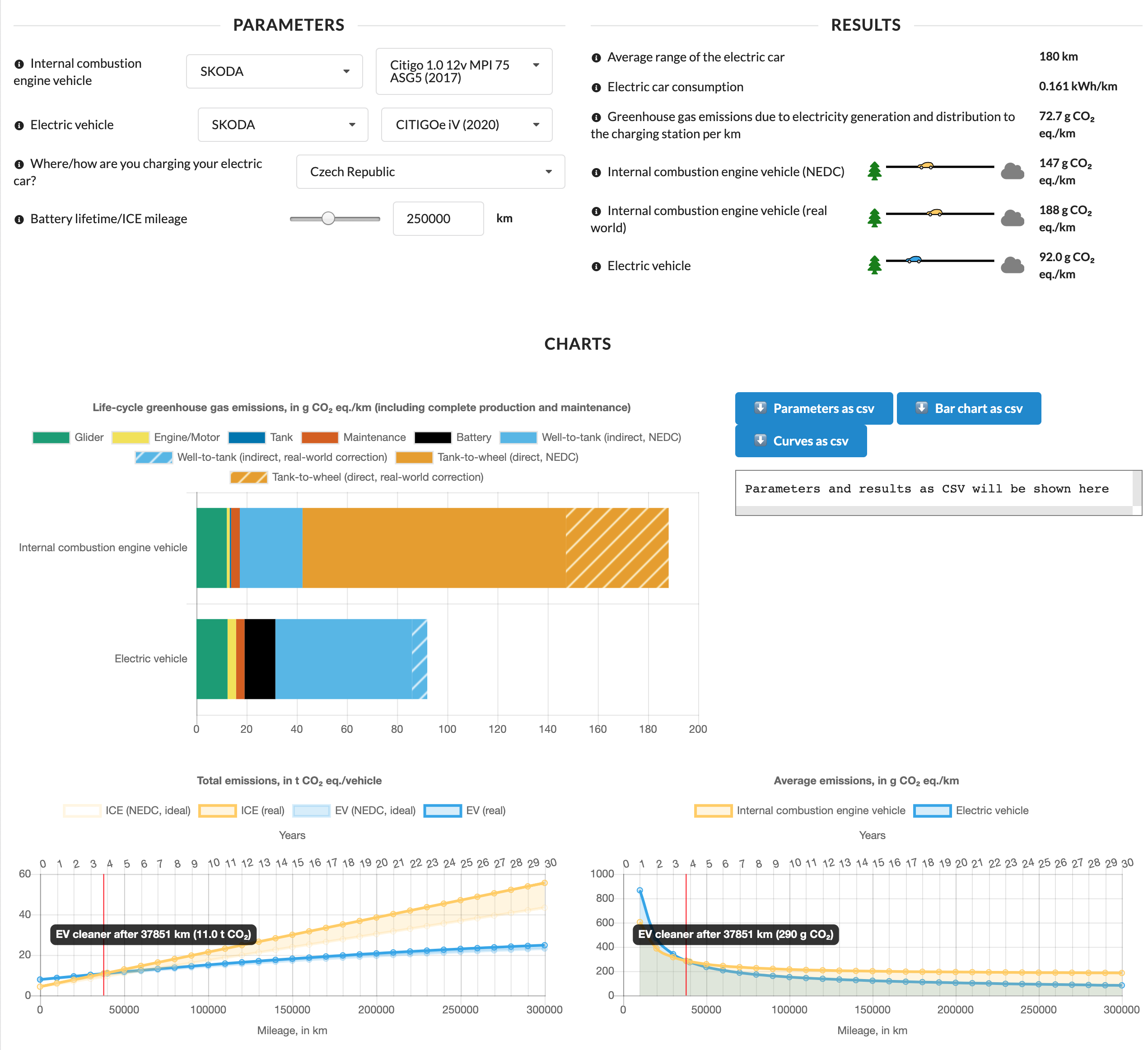 Projekt Lucemburského institutu vědy a technologií: srovnávač dopadu životního cyklu spalovacího vozu vs. elektromobilu z pohledu globálních emisí CO2